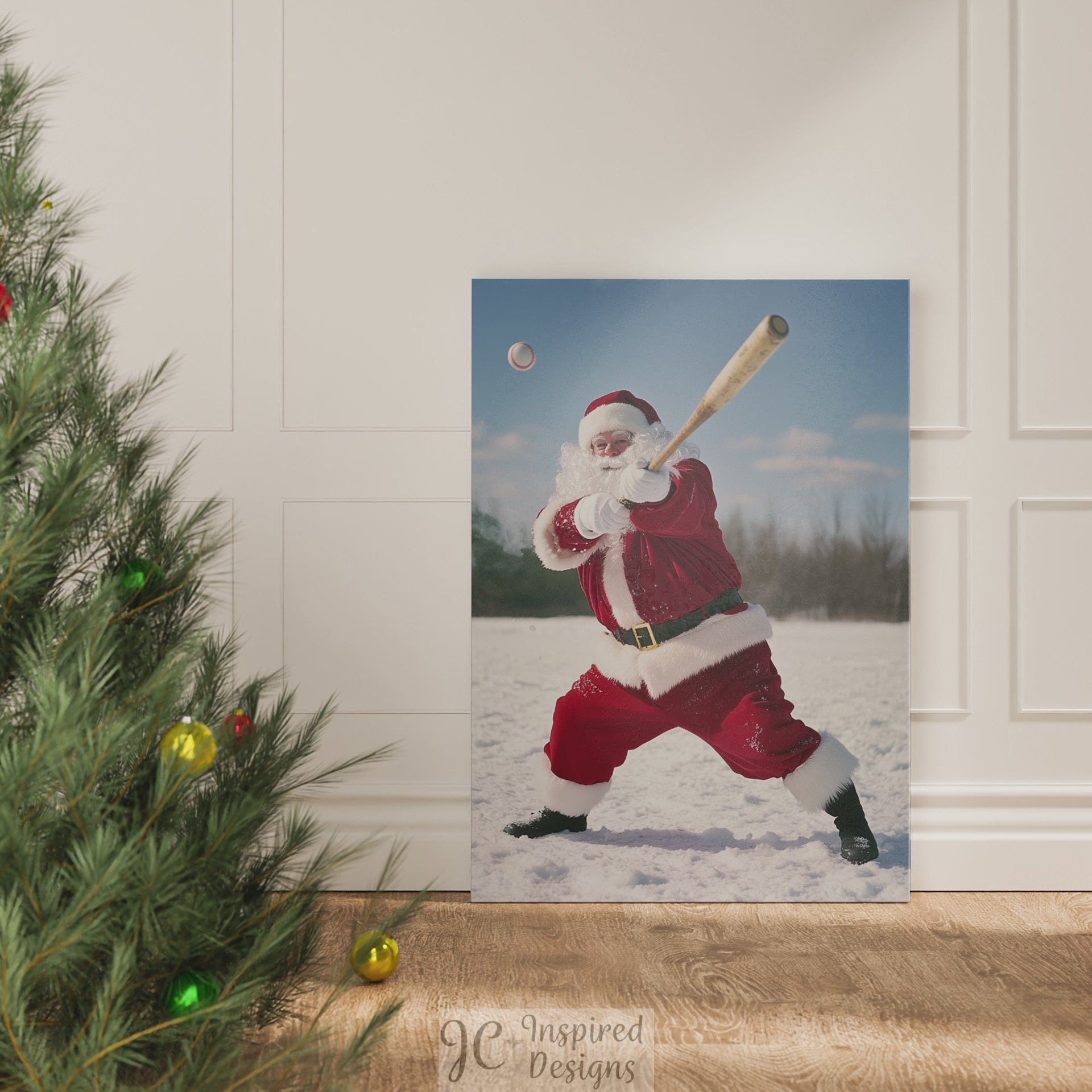 Not only is this canvas print a visual delight, but it also makes great Christmas gifts for Santa and baseball fans, lovers, players, and enthusiasts! Spread the holiday joy and share the excitement of Santa Claus playing baseball with your loved ones. It will be one of your favorite Christmas decorations! Transform your living space into a spirited Christmas wonderland with our aesthetic Christmas Canvas Print. Celebrate the season with this unique and playful artwork. Order yours today and let the magic of Christmas and basebcall come alive on your walls. Product Details: - High-quality canvas print. - Vibrant colors and detailed imagery. - Available in multiple sizes to suit your space. - Ready to hang with pre-attached hangar. No assembly required. - Perfect for holiday wall art and Christmas wall decor. Ideal as a Christmas gift or seasonal home decoration. All Christmas canvas prints feature our original designs that can only be found on our site, and all products are printed in the USA.